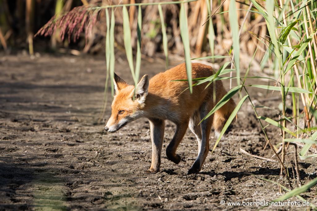 Fuchs kommt aus dem Schilf