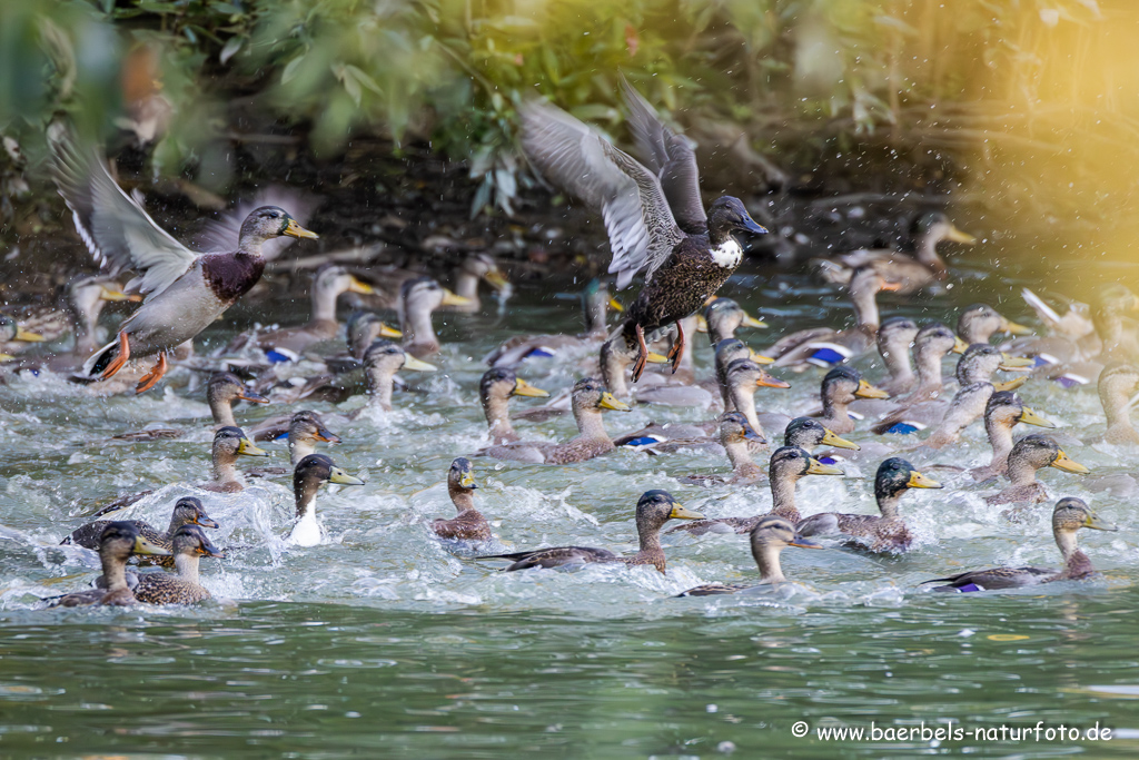 Bilder, Fotos | Waschbär, Rauchschwalben, Zilpzalp, Fitis, Rohrweihe, Zwergtaucher, Stockenten