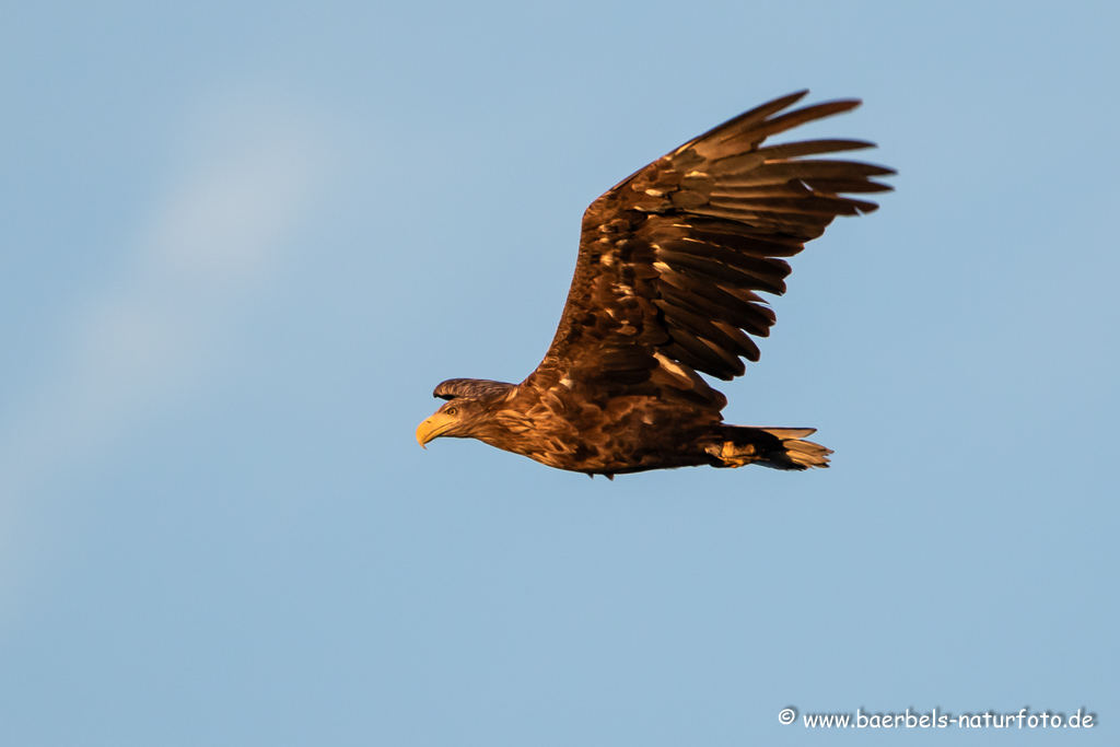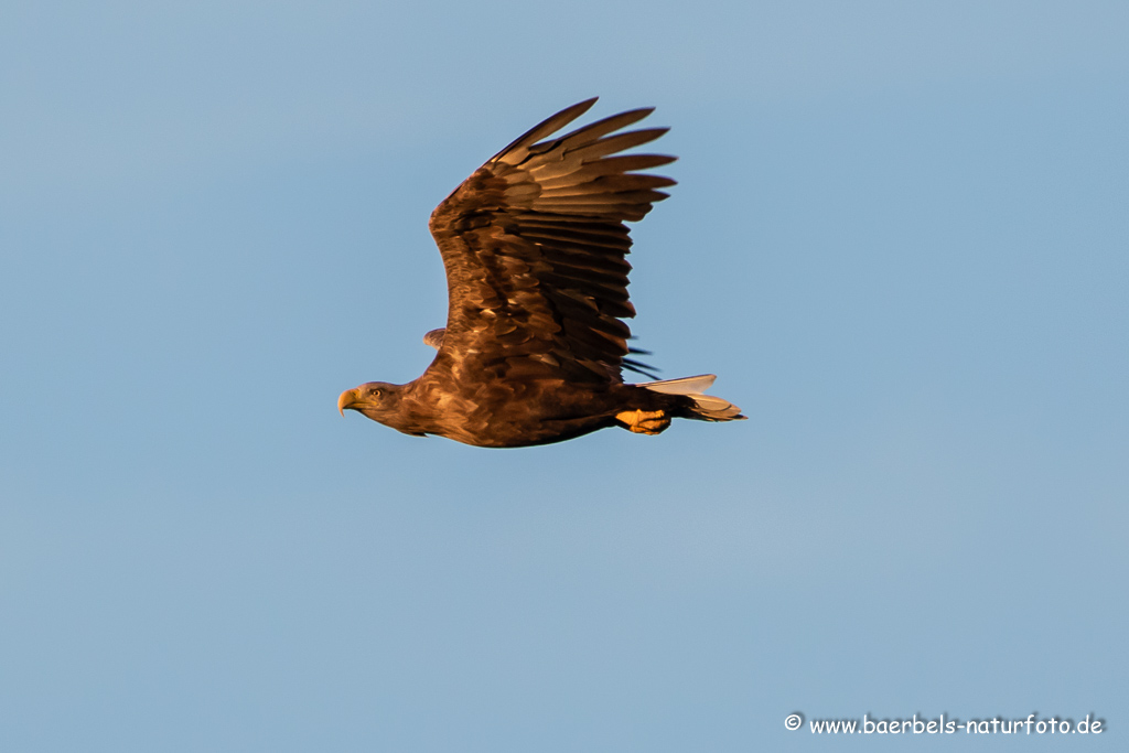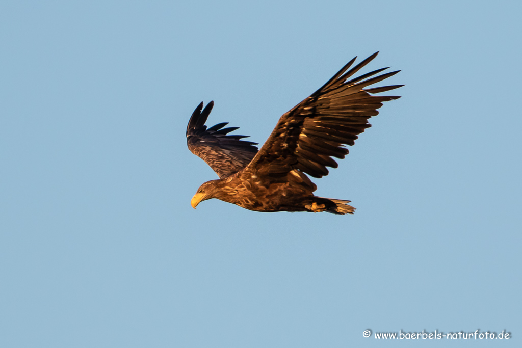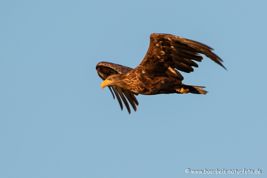 Seeadler fliegt über den Teich
