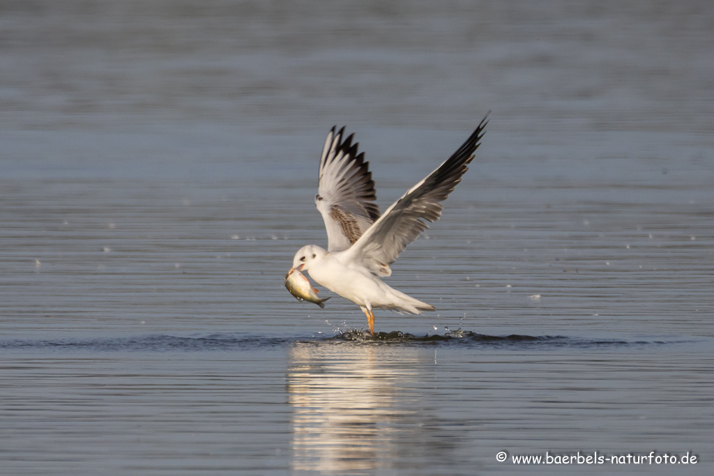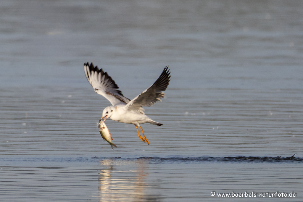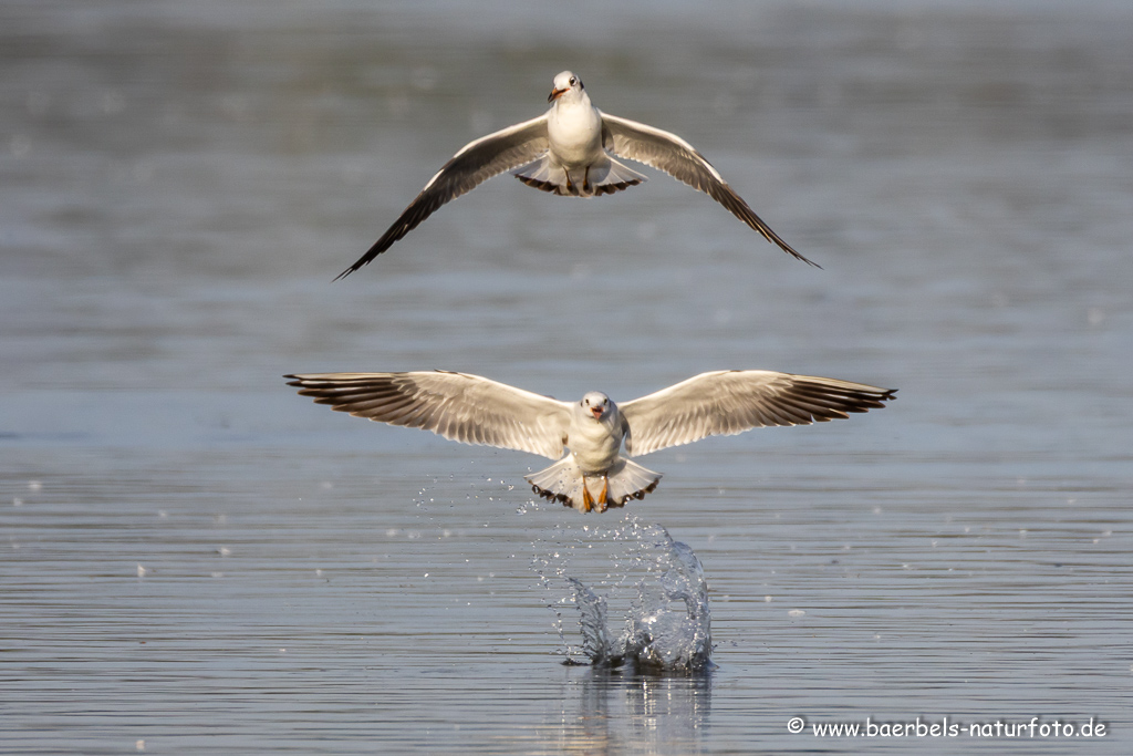 Lachmöwen lassen den Fisch ins Wasser fallen