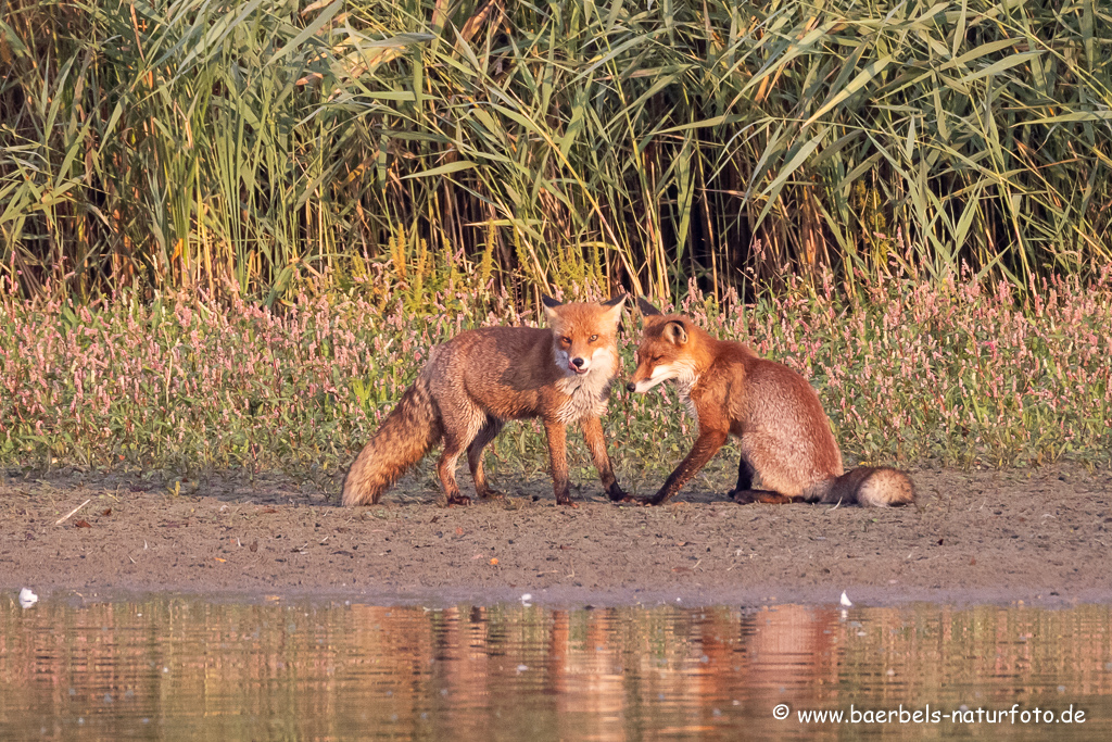 Am Schilfrand sind die zwei Füchse wieder unterwegs