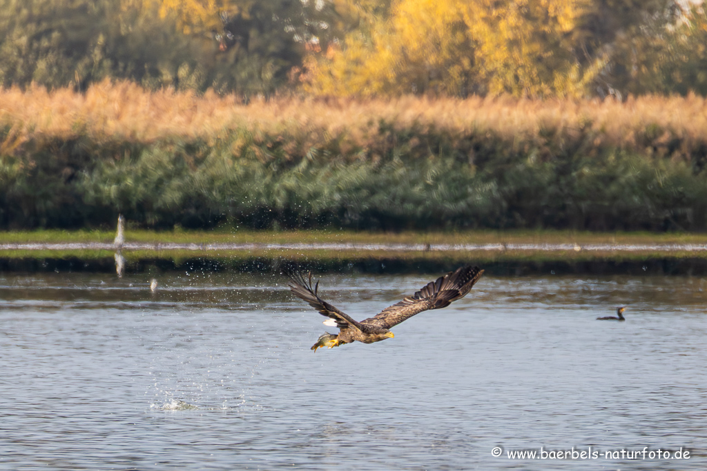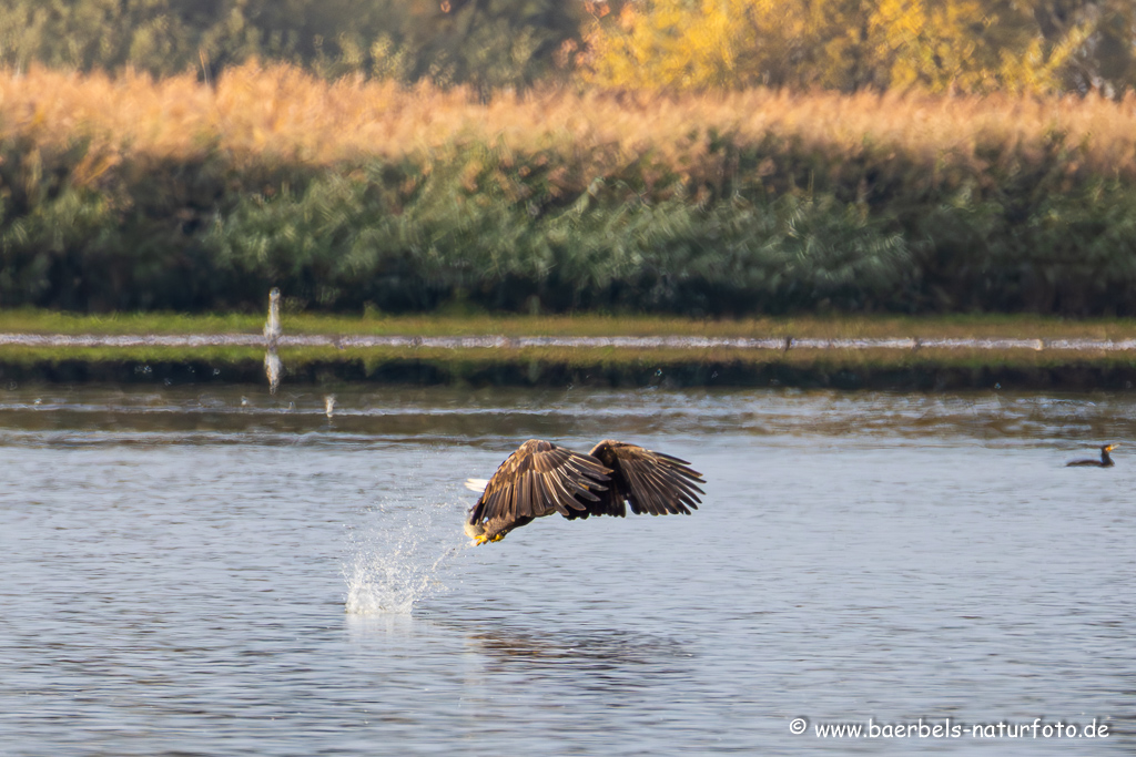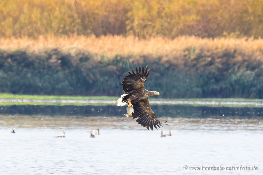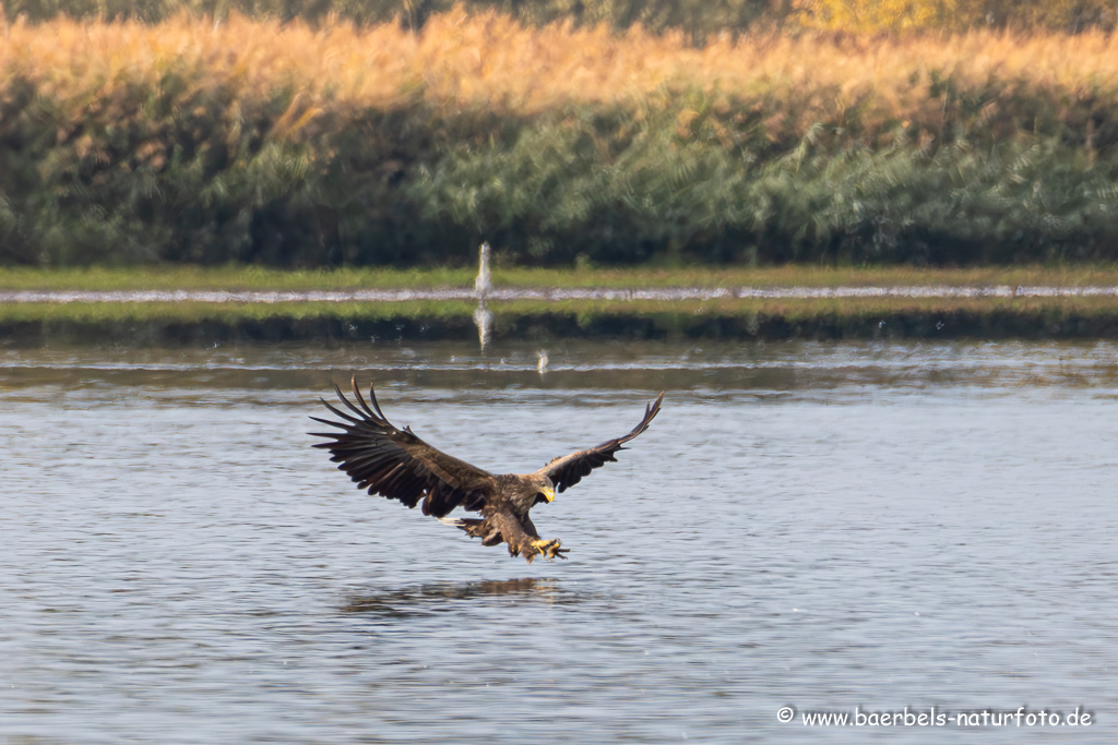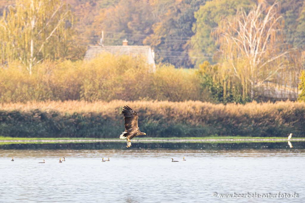 Auf der gegenüberliegenden Seite vom Teich fischt der Seeadler