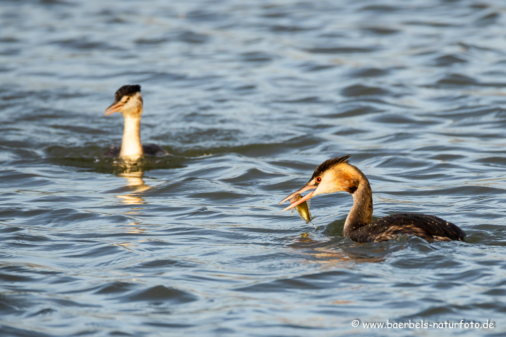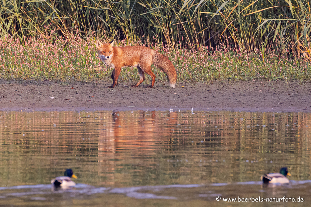 Bilder, Fotos | Rotfuchs, Wintergoldhähnchen, Rehe, Haubentaucher mit Fisch, Gänsesäger, Bartmeise, Waldwasserläufer.